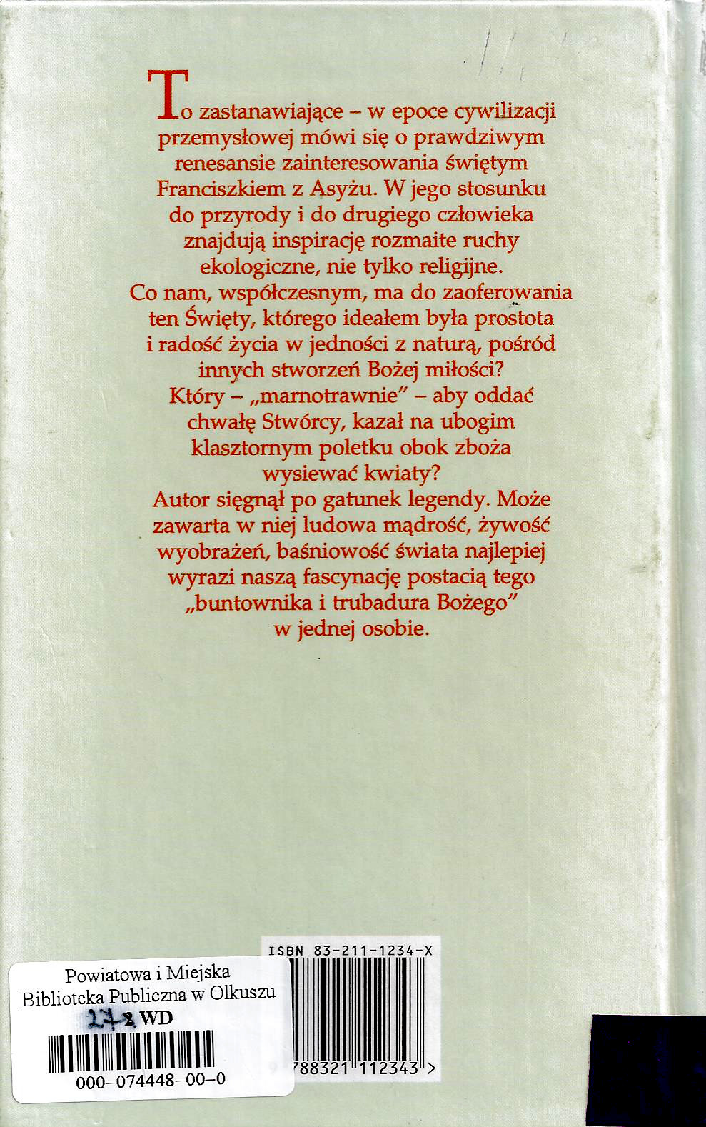 Tyt. oryg.: "Der Rebell und Spielmann Gottes : Franz von Assisi in neuen Legenden" 1996.