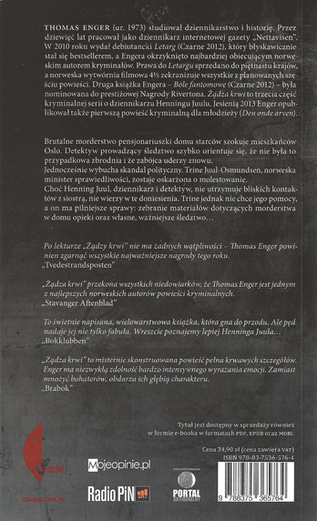 Brutalne morderstwo pensjonariuszki domu starców szokuje mieszkańców Oslo. Detektyw prowadzący śledztwo szybko orientuje się, że nie była to przypadkowa zbrodnia i że zabójca uderzy znowu. Jednocześnie wybucha skandal polityczny. Trine Juul-Osmundsen, norweska minister sprawiedliwości, zostaje oskarżona o molestowanie.Choć Henning Juul, dziennikarz i detektyw, nie utrzymuje bliskich kontaktów z siostrą, nie wierzy w te doniesienia. Trine jednak nie chce jego pomocy, a on ma pilniejsze sprawy: zebranie materiałów dotyczących morderstwa w domu opieki oraz własne, ważniejsze śledztwo.