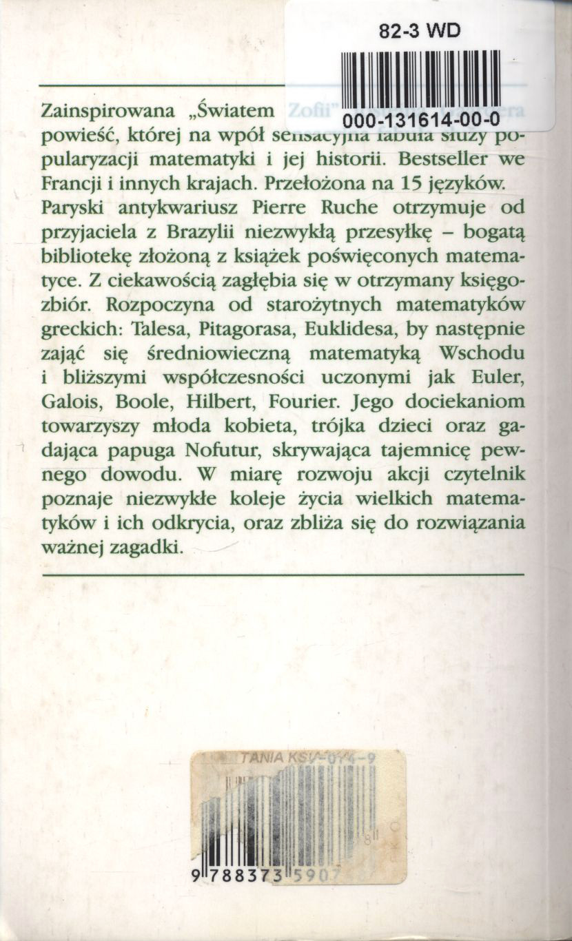Twierdzenie papugi / Denis Guedj. - Wyd. 2 (1 w tej ed.). - Warszawa : "Albatros", 2003. - 530,[1] s. : il. ; 18 cm.