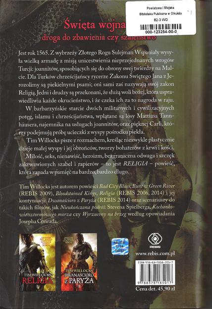 Religia / Tim Willocks ; przełożył Maciej Szymański. - Wydanie 2 poprawione. - Poznań : Dom Wydawniczy Rebis, 2014. - 749, [2] strony ; 22 cm.