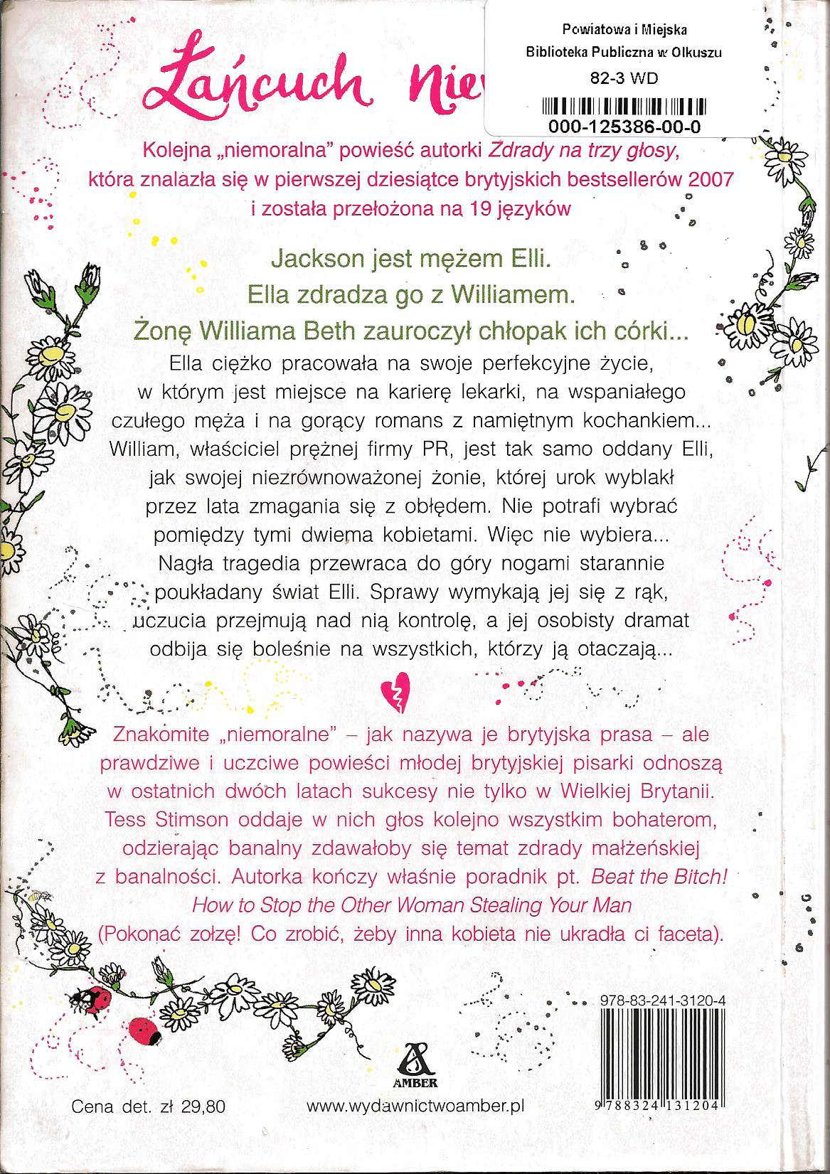Sześcioro kochanków, trzy romanse... Czy ktoś przerwie łańcuch niewierności? Jackson jest mężem Elli. Ella zdradza go z Williamem. Żonę Williama Beth zauroczył chłopak ich córki... Ella ciężko pracowała na swoje perfekcyjne życie, w którym jest miejsce na karierę lekarki, na wspaniałego czułego męża i gorący romans z namiętnym kochankiem... William, właściciel prężnej firmy PR, jest tak samo oddany Elli, jak swojej niezrównoważonej żonie, której urok wyblakł przez lata zmagania się z obłędem. Nie potrafi wybrać pomiędzy tymi dwiema kobietami. Więc nie wybiera... Nagła tragedia przewraca do góry nogami starannie poukładany świat Elli. Sprawy wymykają jej się z rąk, uczucia przejmują nad nią kontrolę, a jej osobisty dramat odbija się boleśnie na wszystkich, którzy ją otaczają...