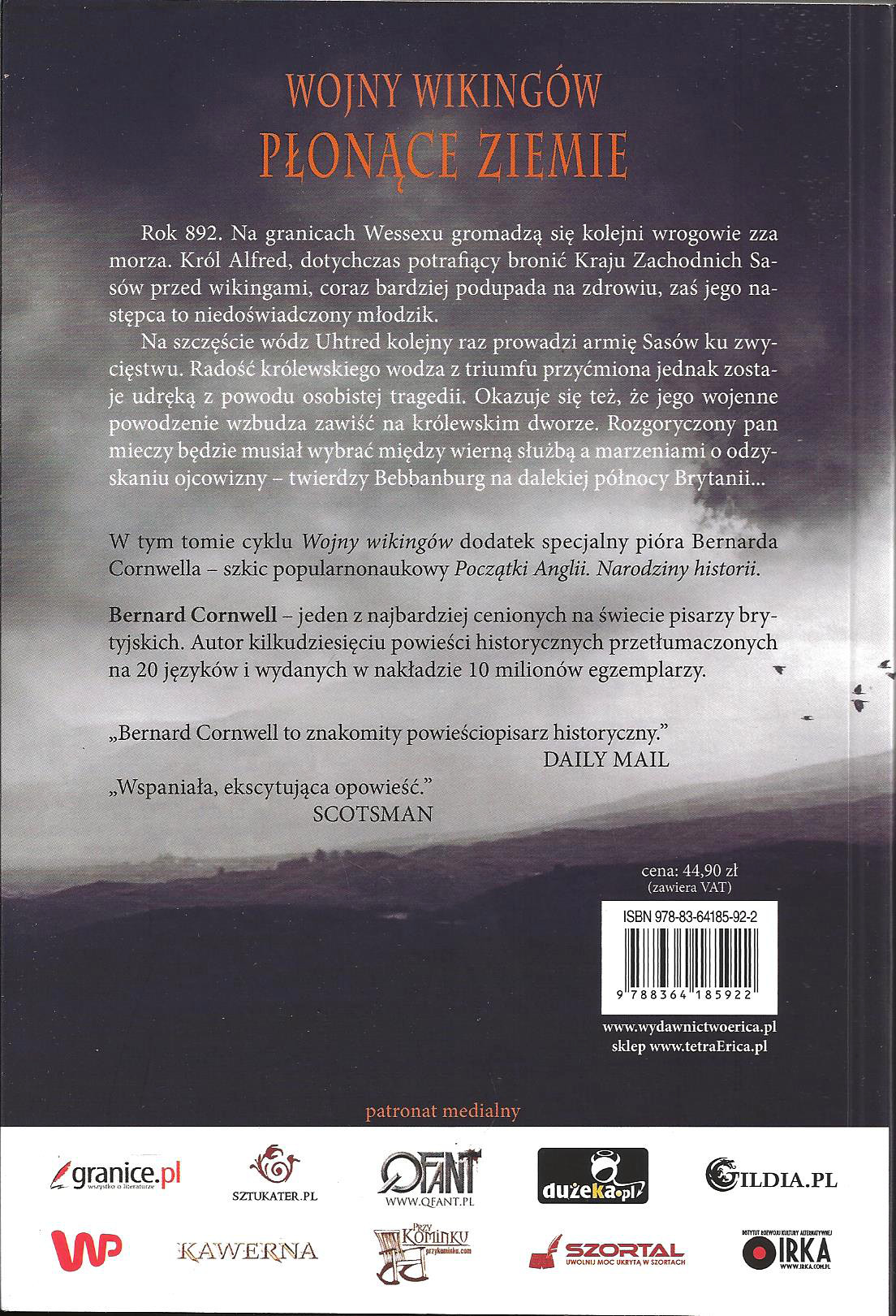 Płonące ziemie / Bernard Cornwell ; przekł. Mateusz Pyziak. - Warszawa : Erica, 2015. - 593, [1] s. : il. ; 21 cm.