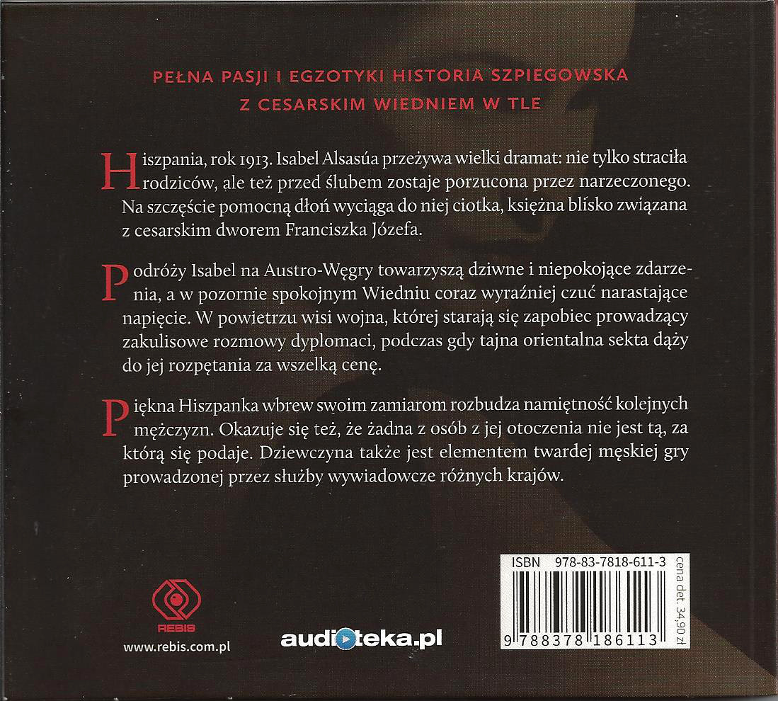 Hiszpania, rok 1913. Młoda szlachcianka Isabel przeżywa wielki dramat: nie tylko straciła rodziców, ale też na chwilę przed ślubem zostaje porzucona przez narzeczonego. Na szczęście pomocną dłoń wyciąga do niej ciotka, austriacka arystokratka blisko związana z cesarskim dworem Franciszka Józefa. Podróży Isabel do Austrii towarzyszą dziwne i niepokojące zdarzenia, a w pozornie spokojnym Wiedniu coraz wyraźniej czuć narastające napięcie. W powietrzu wisi wojna, której starają się zapobiec prowadzący zakulisowe rozmowy dyplomaci, podczas gdy spotykająca się potajemnie orientalna sekta dąży do jej rozpętania za wszelką cenę. Piękna Hiszpanka wbrew swoim zamiarom rozbudza namiętność kolejnych mężczyzn. Okazuje się, że żadna z osób, z którymi się styka, nie jest tym, za kogo się podaje. Stopniowo dziewczyna staje się elementem twardej męskiej gry, prowadzonej przez agencje wywiadowcze różnych krajów.