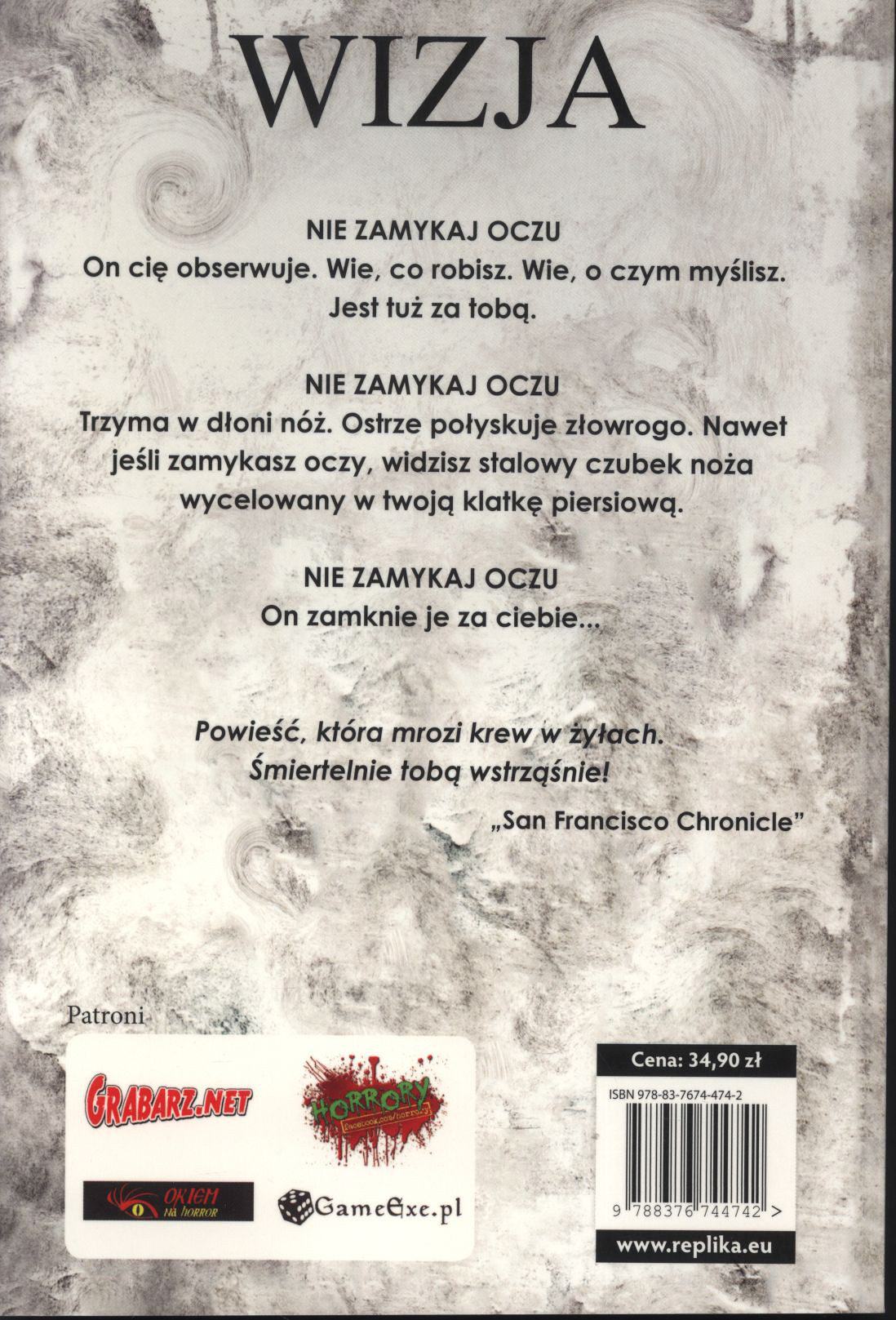 Wizja / Dean Koontz ; przeł. Agnieszka Ostrowska. - Wyd. 1. w tej ed. - Zakrzewo : Wydawnictwo Replika, cop. 2015. - 319, [1] s. : il. ; 21 cm.