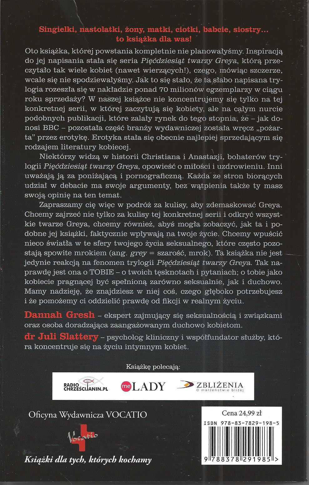 Tyt. oryg.: "Pulling back the shaders : erotica, intimacy, and the longings of a woman's heart" 2014.