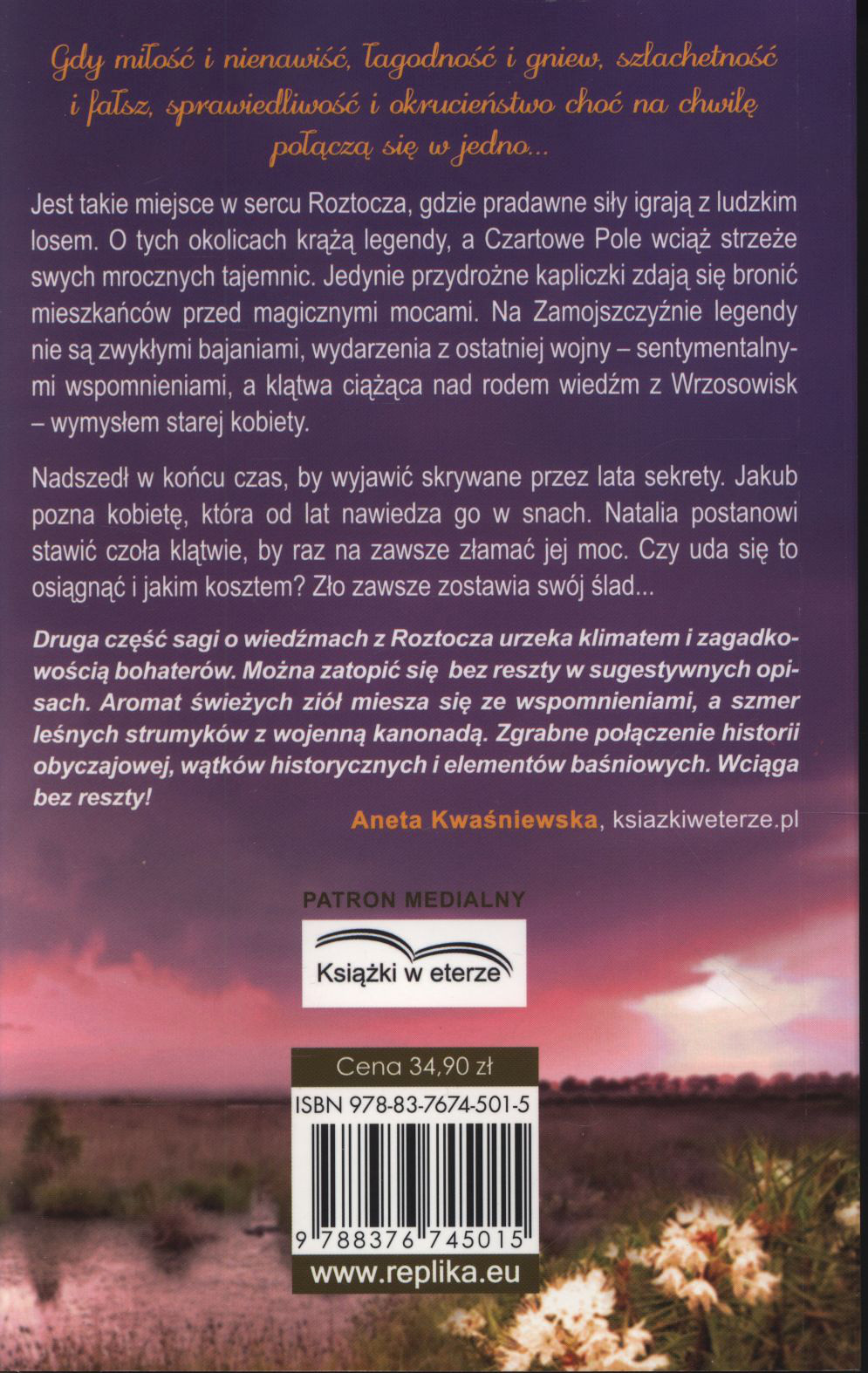 Stanowi cz. 2. sagi o wiedźmach z Roztocza, cz. 1. pt.: "Wrzosowiska", cz. 3. "Uroczysko".