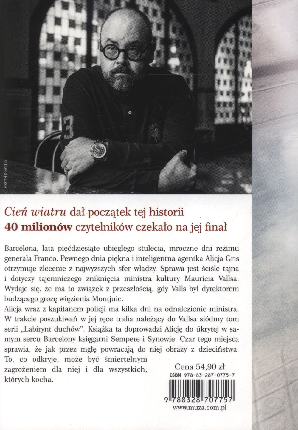 Co się tyczy samej fabuły... Tym razem jest ona o wiele bardziej wielowątkowa niż dotychczas, ale nie ma najmniejszych nawet szans, żeby się na kartach powieści w niej zagubić. Ilość bohaterów też może w pierwszej chwili nieco oszołomić czytelnika, lecz absolutnie nikt jak się okazuje nie jest zbyteczny. W ostatnim tomie cyklu prym wiedzie niejaka Alicja Gris, która otrzymuje za zadanie odnalezienie zaginionego ministra kultury Vallsa. Jednocześnie zostaje uwikłana w intrygę o całkiem innym celu... Prowadząc swe śledztwo Alicja dociera do prawdy zarówno o przeszłości ministra, jak i słynnej rodziny barcelońskich księgarzy,od których się cała historia cyklu przecież zaczęła... I tu Zafón postanowił zakończyć swą opowieść spowitą mrokami Barcelony, ale nie miejcie złudzeń... Mimo wszystko postanawia pozostawić na koniec nieco niedopowiedzeń. Odnoszę wrażenie, że jego umysł literacki jest niczym ocean pełen niedokończonych historii...