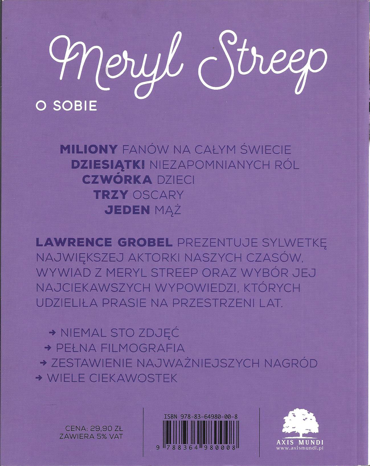 Po książkę tę sięgnęłam tym chętniej, że zaliczam się do wielbicieli kunsztu aktorskiego Meryl Streep. Bo tak naprawdę w całej jej karierze nie ma ani jednej źle zagranej roli.