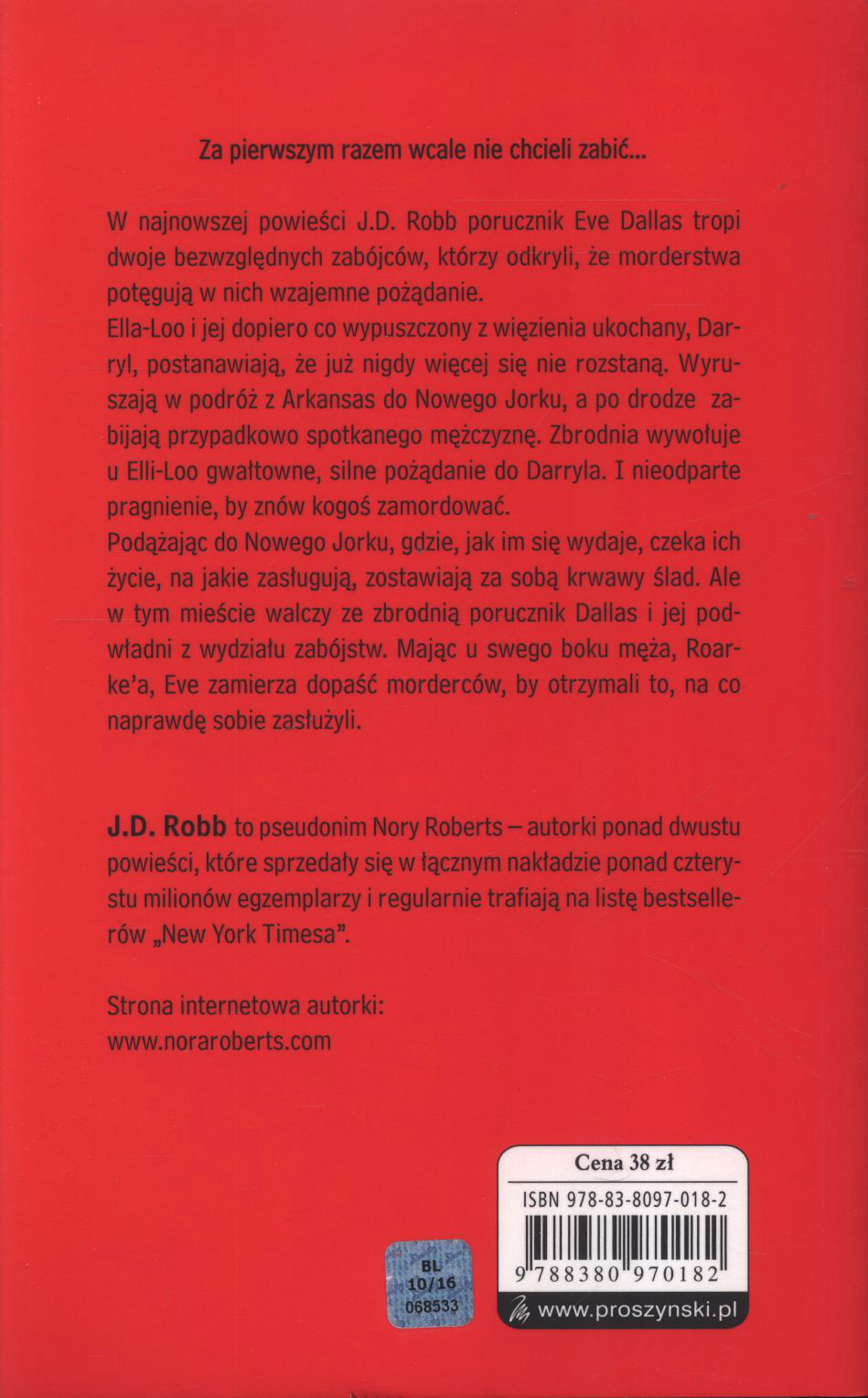 Na książce pseudonim autora: Nora Roberts jako J. D. Robb, nazwa: Eleanor Wilder.