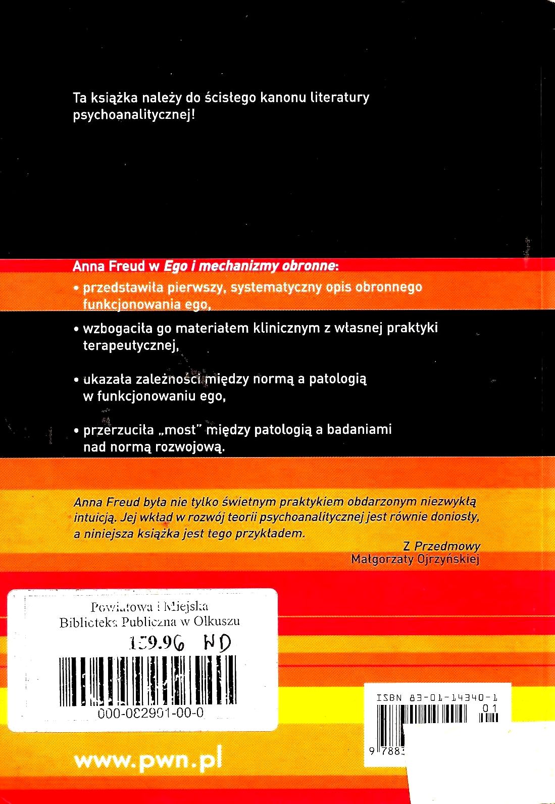 Ego i mechanizmy obronne / Anna Freud. - Warszawa : Wydawnictwo Naukowe PWN, 2004. - 143, [1] s. ; 21 cm.