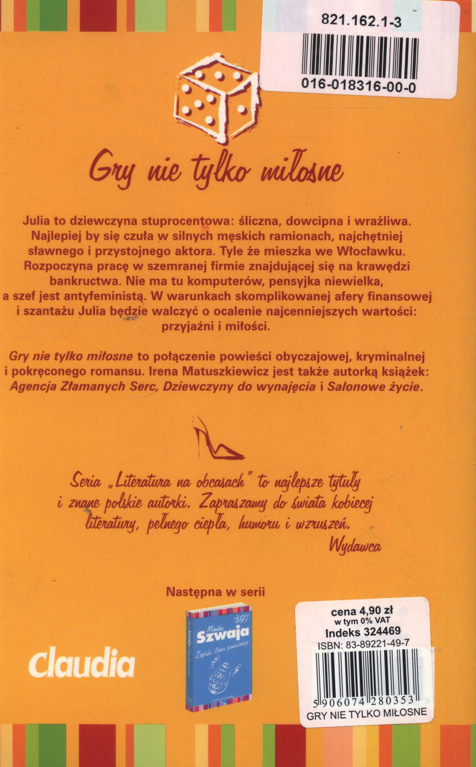 Gry nie tylko miłosne / Irena Matuszkiewicz. - Warszawa : Prószyński i S-ka, 2002. - 293, [1] s. ; 20 cm.