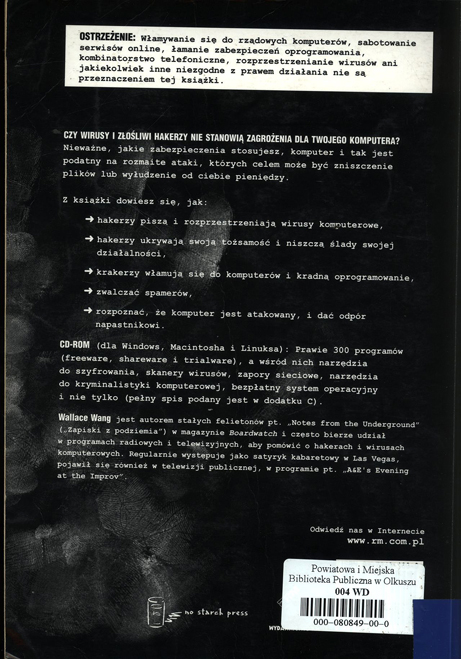 Tyt. oryg.: "Steal this computer book" 2000. - Na okł. podtyt.: to, czego nigdzie nie znajdziesz. - Poprz. poz. ogł. pod hasłem: Wang Wallace.