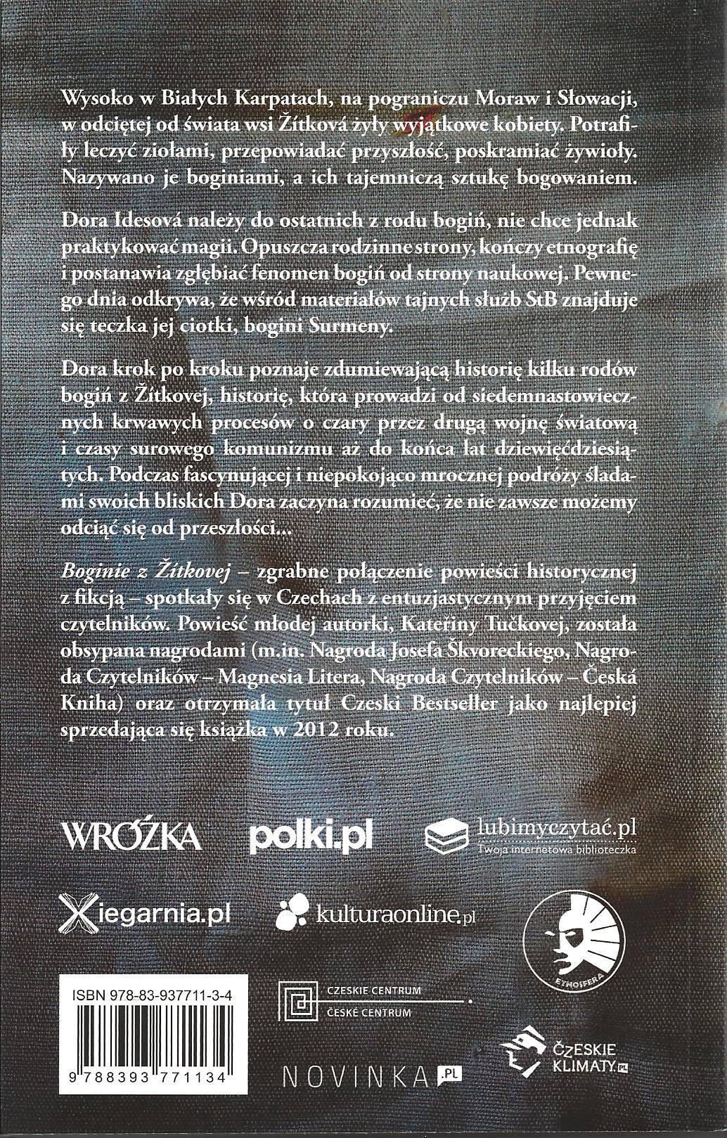 Książka czeskiej autorki to powieść wielowątkowa, rozgrywająca się na wielu płaszczyznach czasowych. Jej osią jest zbieranie materiałów do pracy naukowej, która ma zrehabilitować boginie, przodkinie etnografki. Nudną pracę naukową, Tučková uczyniła wciągającą i sensacyjną, każdy kolejny znaleziony materiał uzupełniał fabułę o kolejne interesujące wątki. Trzymałam kciuki za Dorę, żeby znalazła kolejne i zapełniła następne białe plamy jej pochodzenia i dziedzictwa. Ta książka to również głos w sprawie silnych kobiet, które nie przystawały do żadnego z panujących systemów, dlatego zawsze były wrogiem. Kobiet, które spajały lokalną społeczność i pozwoliły jej przetrwać, które przechowały tradycję swoich babek, ich prababek i jeszcze starszą. W większości analfabetek, które były wciągane w sprawy narodowe, jako potomkinie Słowiań, lub jedyne kontynuatorki ariogermańskich zwyczajów i tradycji. Dla komunistycznej władzy były symbolem wstecznictwa, zabobonu, elementem niebezpiecznym i nie współgrającym z socjalistycznymi ideami społecznymi. Ten system wyciągnął przeciwko nim najcięższe działa – oddanych i lojalnych działaczy. Czy boginie z Žítkovej żyły rzeczywiście? Odpowiedź na to pytanie z pewnością miałaby sens naukowy. W wymiarze symbolicznym musiały istnieć. Symboliczna w powieści jest też prawda, prawda próby wody, prawda zeznać i ekspertyz, prawda naukowych dociekań, prawda pogrzebowego śpiewaka, prawda ludzkiej pamięci i prawda milczenia i prawda o sobie.