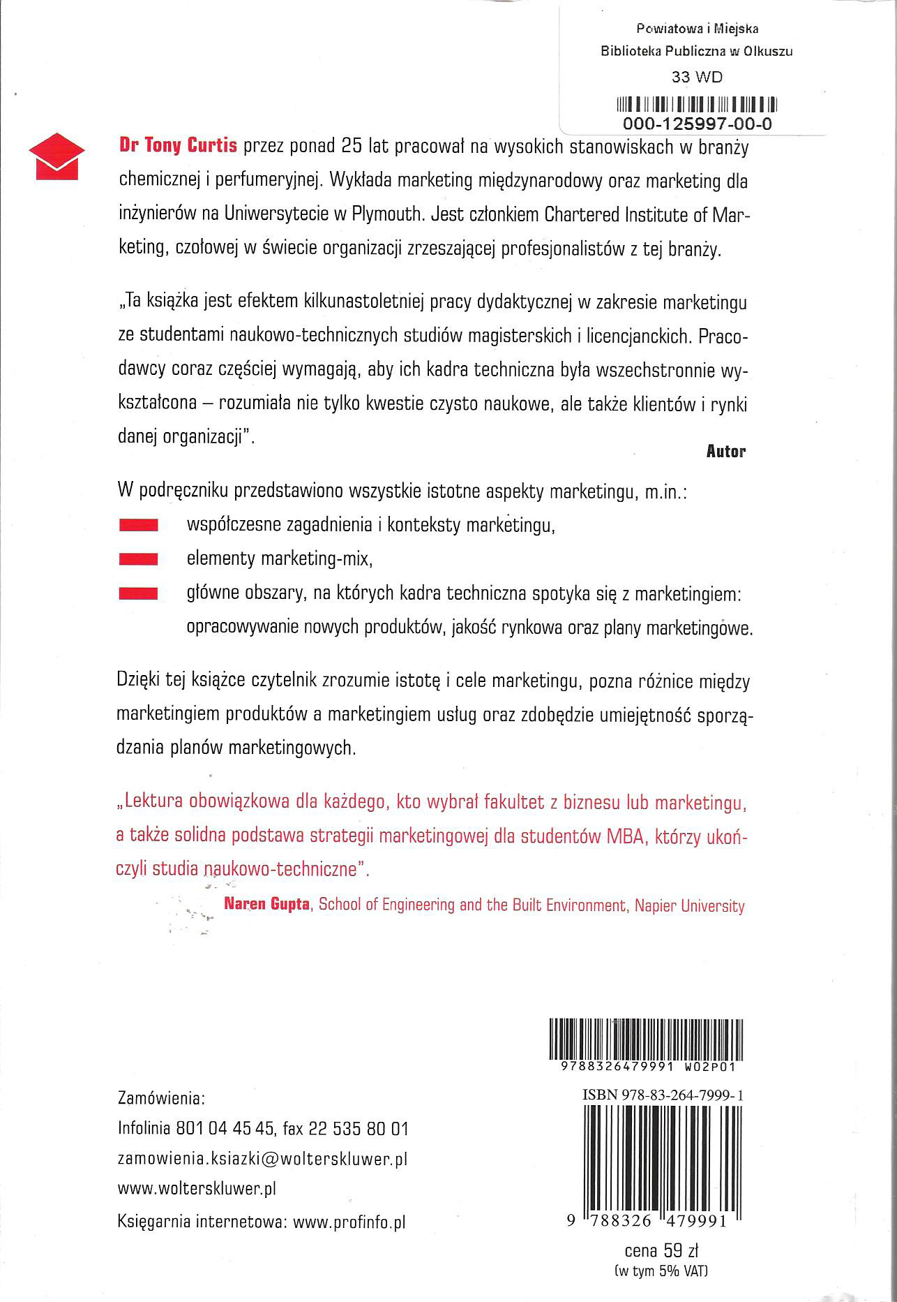 Wyd. 1 ukazało się pt.: Marketing dla inżynierów, naukowców i technologów.